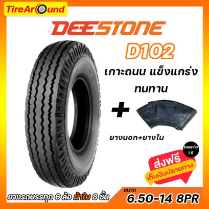 6.50-14 8PR (ยางนอก+ยางใน) DEESTONE D102 ดอกสร้อย