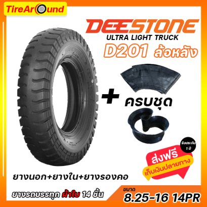 8.25-16 14PR (นอก+ใน+รอง) DEESTONE D201 บั้ง ล้อหลัง ผ้าใบ