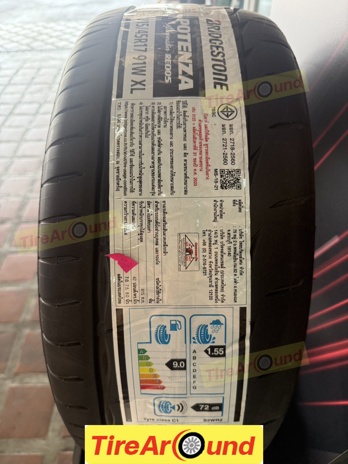 ขอบ 17 นิ้ว | ยี่ห้อยาง BRIDGESTON | รุ่นยาง RE005| ขนาด 215/45R17 I ปี2025